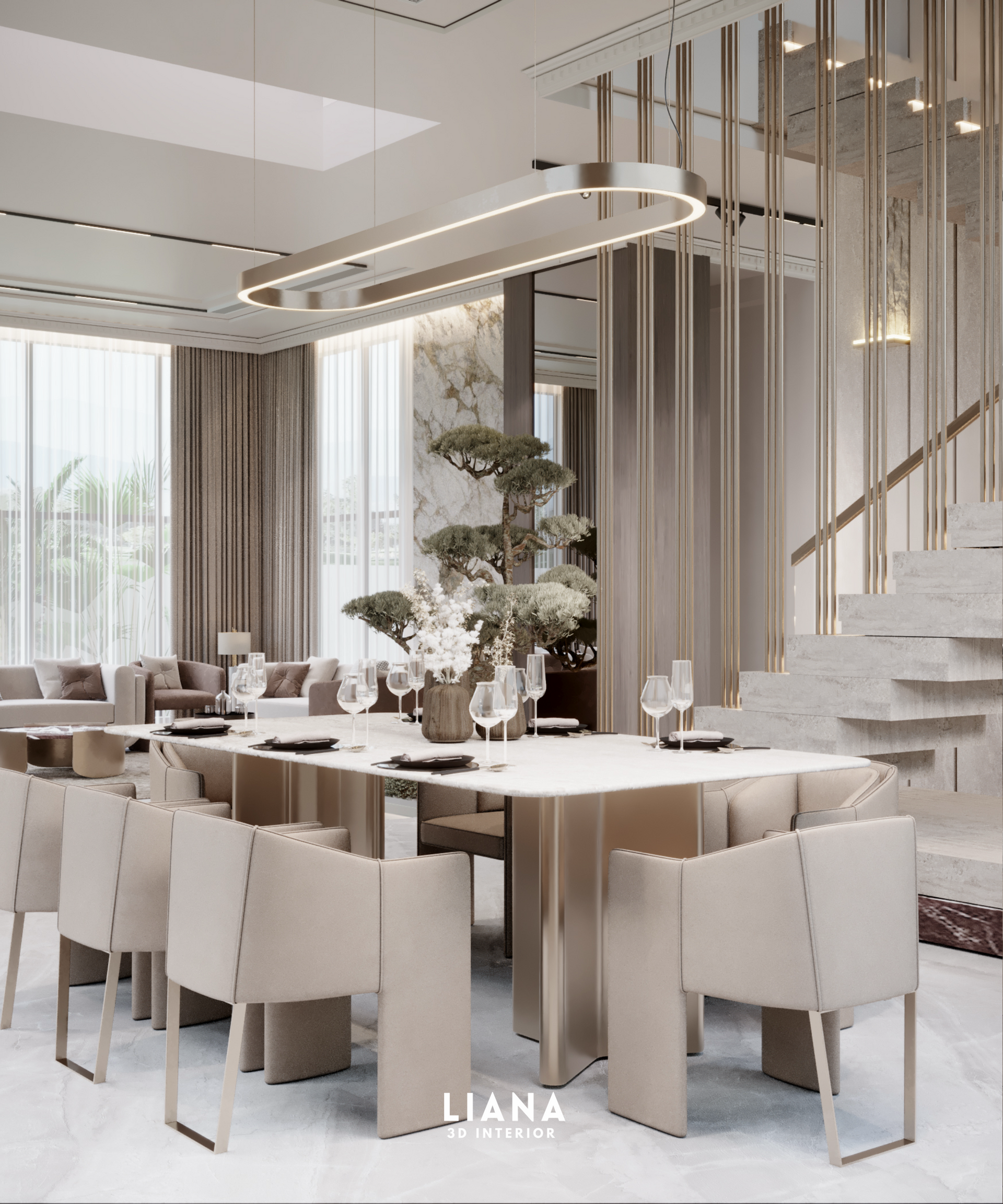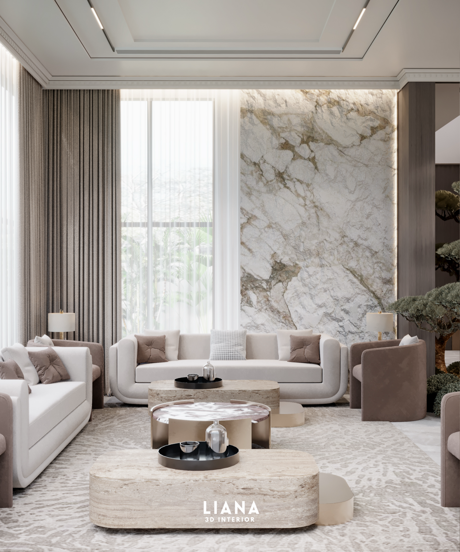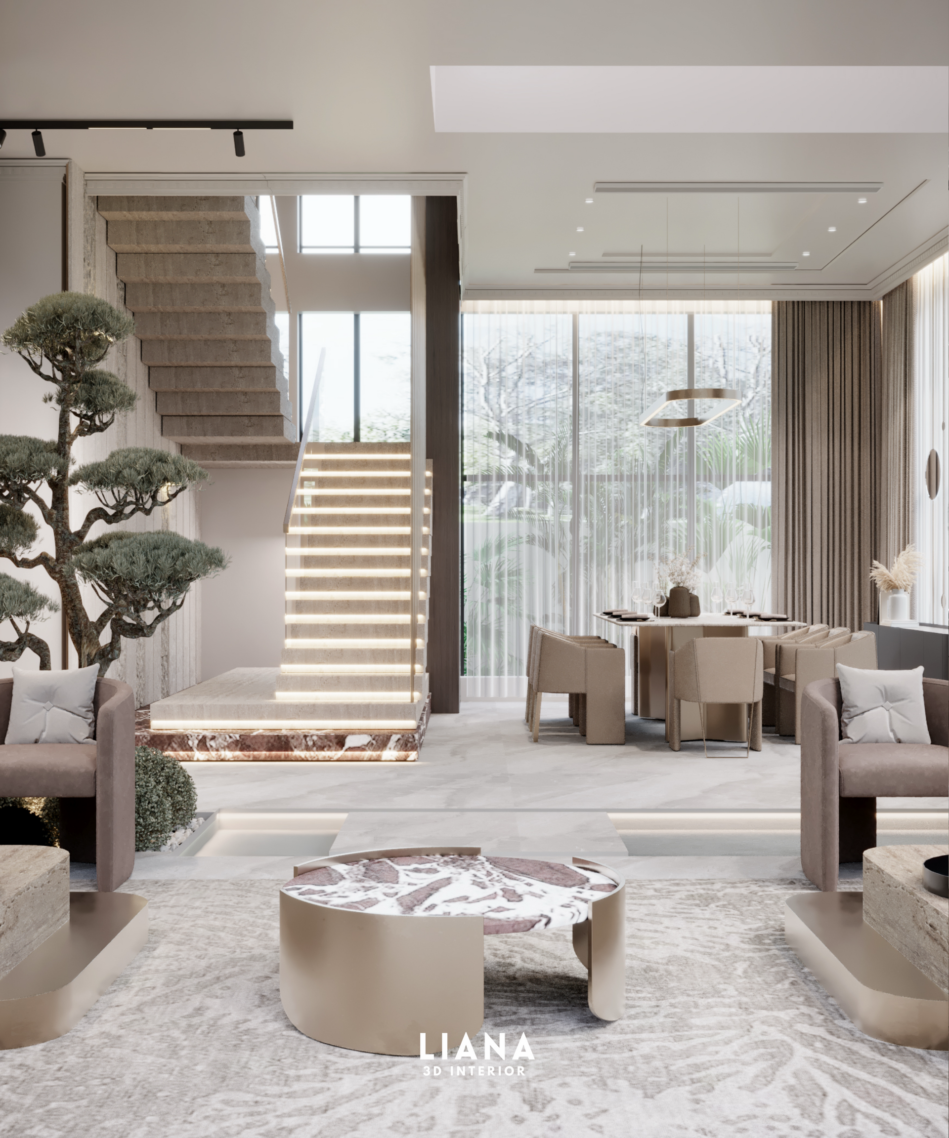 Modern home office with desk, chair, and large monitor. Neutral tones, natural light, and artistic elements.